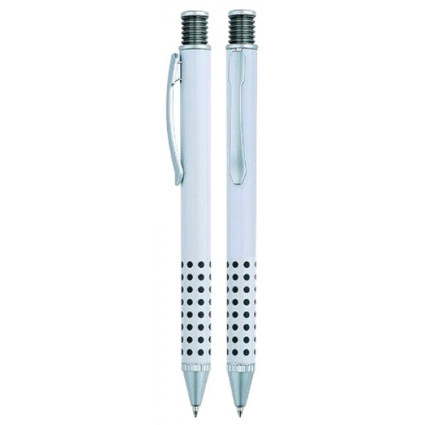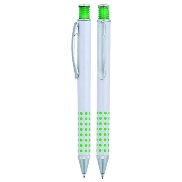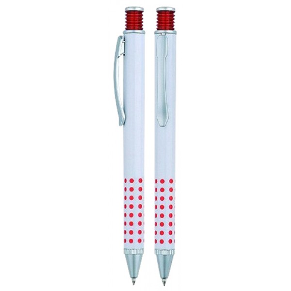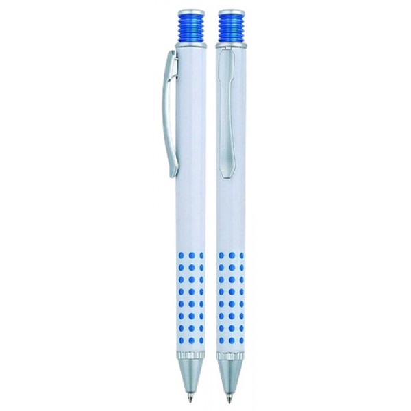 Bolígrafo Plástico Blanco con Puntos de Color. Escritura Azul.