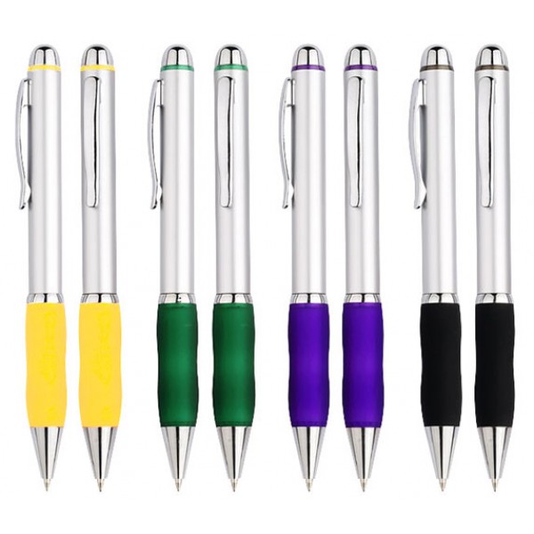Bolígrafo Plástico Metalizadocon Goma de Color.