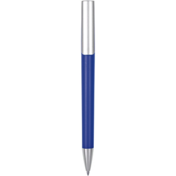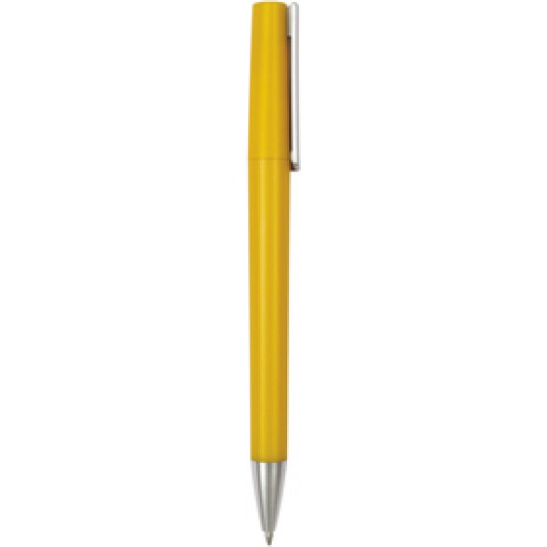 Bolígrafo Plástico Cuerpo de color y detalles de color plata en clip y puntera. Apertura giratoria.
