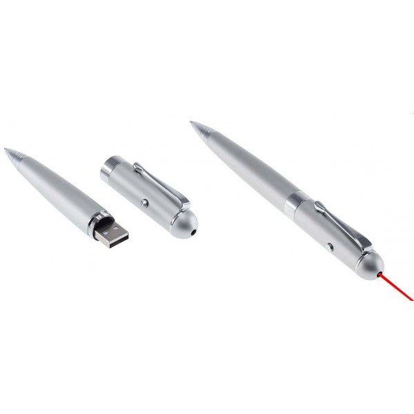 Bolígrafo Metálico con Puntero Láser y USB Pen Drive 8 GB Incorporado. Presentación en Estuche de Aluminio con Ventana.