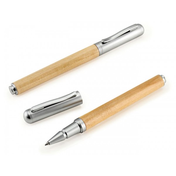 Roller Pen Ejecutivo de Madera de Bamboo con Tapa Metálica Satinada, Escritura Negra.