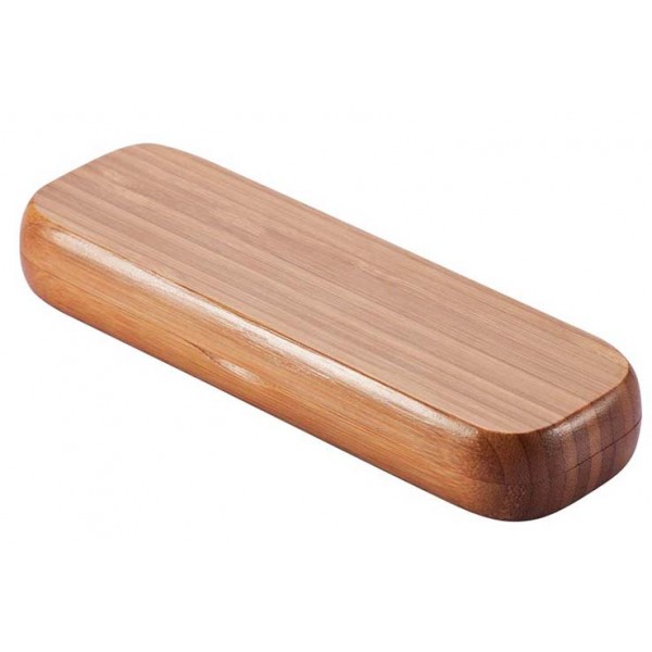 Set Bolígrafo Ejecutivo de Madera de Bamboo con Terminales Plateados. Escritura Negra. Incluye Elegante Estuche de Bamboo Sólido. Presentación Individual en Caja de Cartulina Reciclada Color Natural.