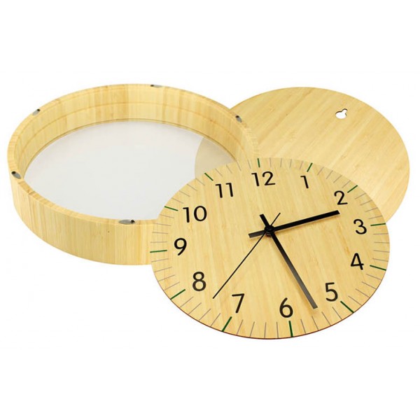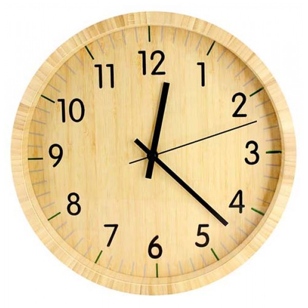 Reloj Análogo Redondo de Pared, 100% Madera Bamboo.