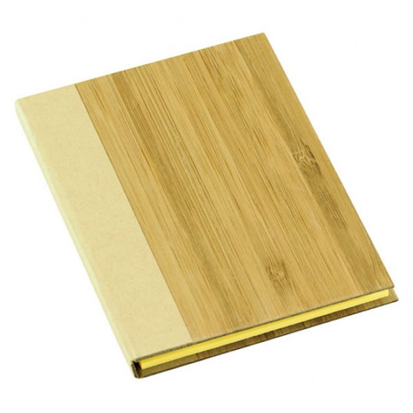 Set con Tapas Duras Enchapadas en Madera de Bamboo. Incluye 50 Post-It Amarillos Grandes, 25 Post-It Amarillos Medianos y 125 Banderitas Adhesivas de Colores.