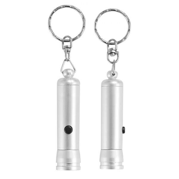 Llavero-Linterna LED Plástica Color Plata. Usa 3 Pilas Botón (Incluidas).