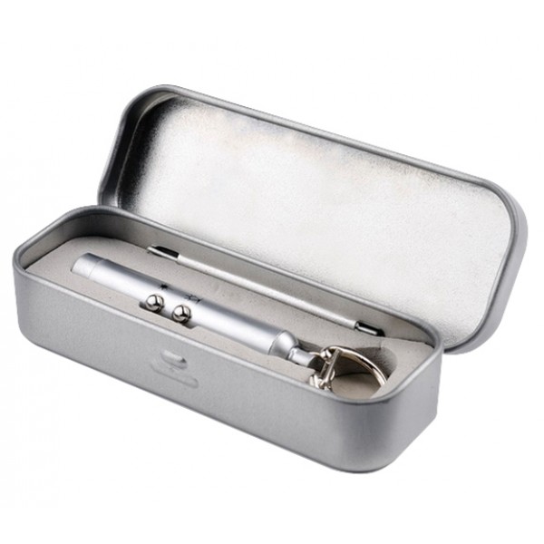 Llavero Metálico con Puntero Láser y Linterna LED. Presentación en Estuche de Aluminio.