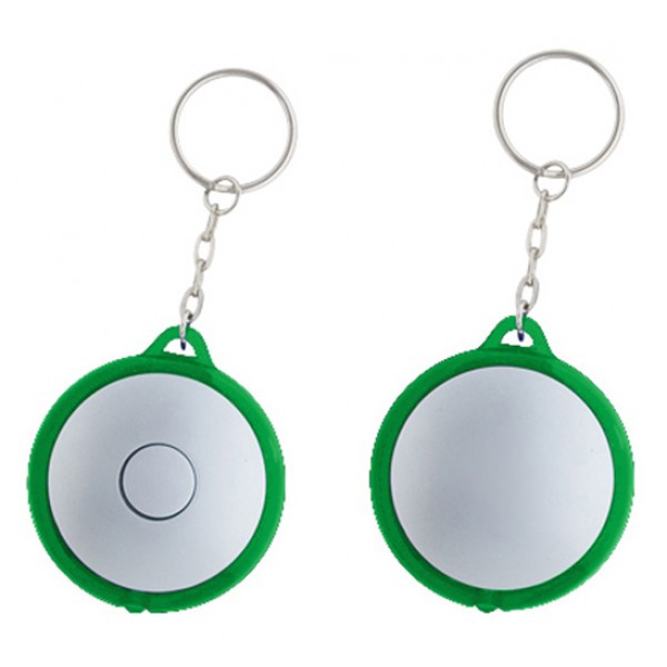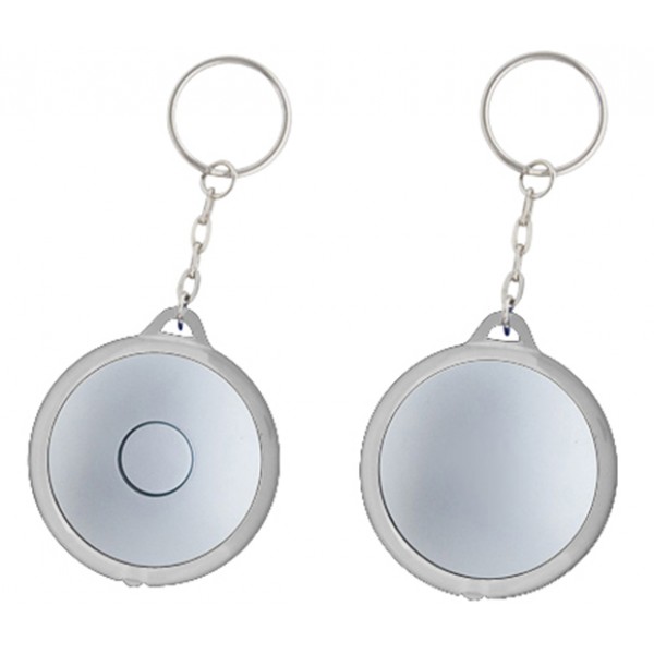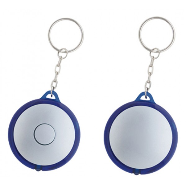 Llavero - Linterna LED Redondo con Cuerpo Plateado y Anillo (Borde) de Color Traslúcido.