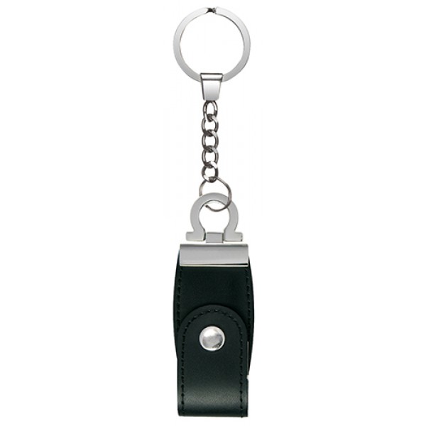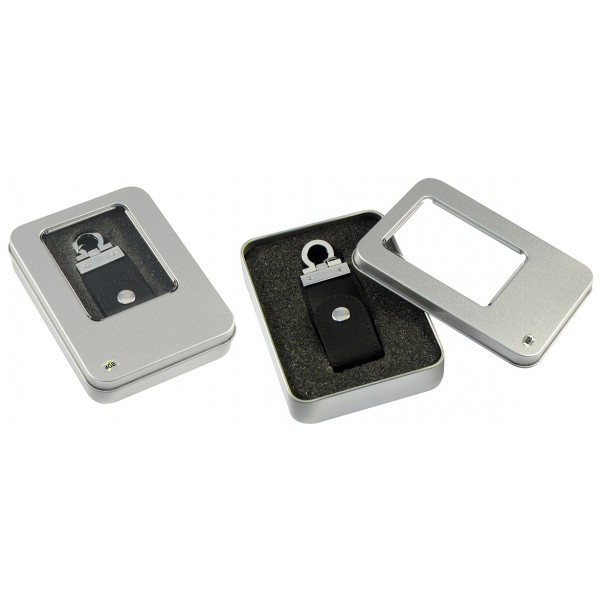Llavero Metálico con USB Pendrive Ejecutivo de Cuero Negro de 4 GB de Capacidad. Presentación en Caja Metálica con Ventana.