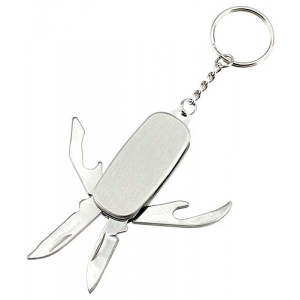 Llavero Multiherramientas de Acero Inoxidable con 5 Funciones. Presentación en Cajita de Regalo Plateada