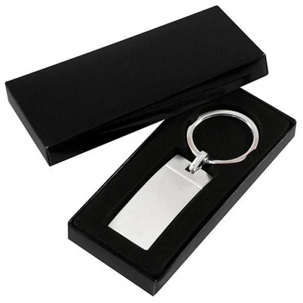 Llavero Metálico Satinado. Presentación en Estuche Laminado Negro con Cuna Aterciopelada.