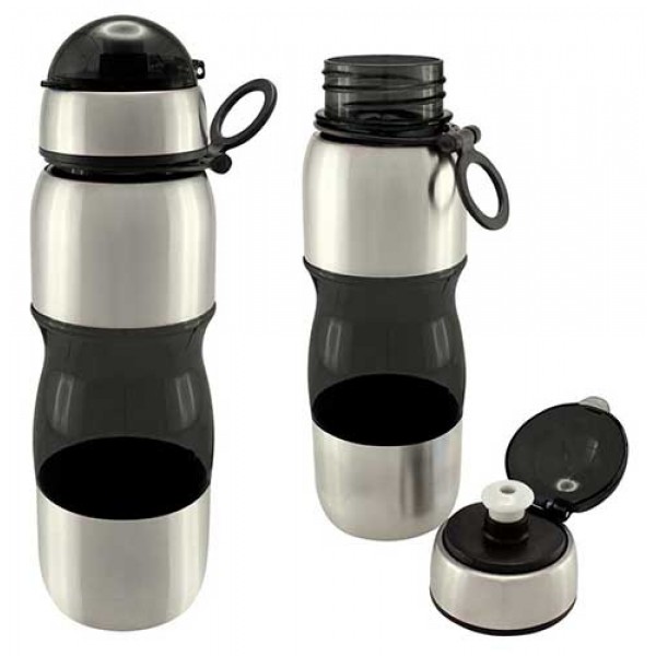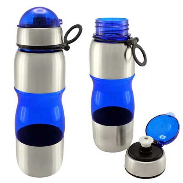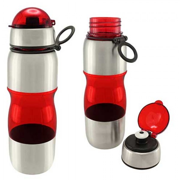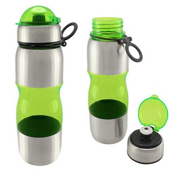 Botella Deportiva de Acero Inoxidable con Plástico Rígido Traslúcido. Para líquidos Fríos (No Térmico).
