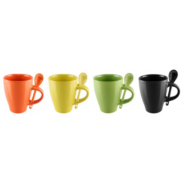 Tazón Cerámico con Cuchara. Presentación Individual en Caja de Cartón Blanco.