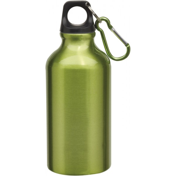 Ø 6,5 x 17,5 cm. Capacidad 400 ml. Aluminio. Botella de aluminio con cierre de plástico y carabina metálica.