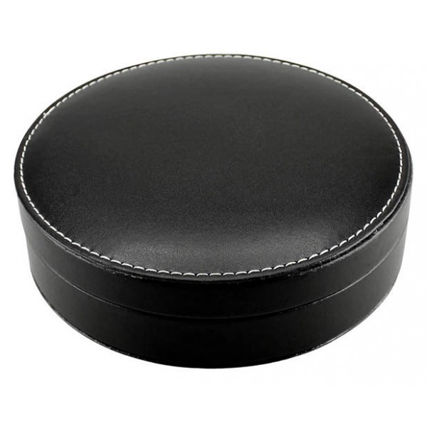 Set de 4 Accesorios Metálicos para el Vino, con Terminales de Madera Barnizada, Presentación en Estuche Redondo de PU Negro con Tapa.