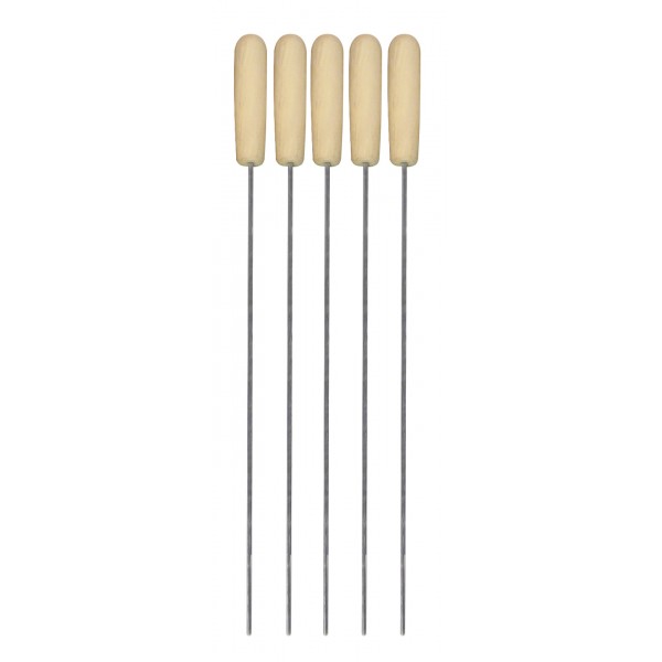 Set fr 5 Fierros para Anticuchos con Mango de Madera, en estuche de tela raquelada.