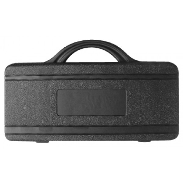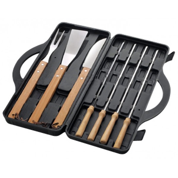 Set de 7 herramientas BBQ en Maletín de Plástico duro negro. Con Ventana rectangular lisa exterior.