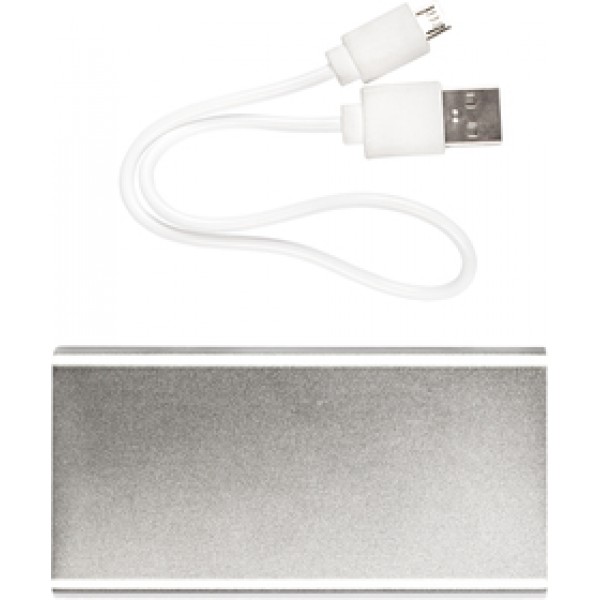Capacidad 3000 MAH. Metal. Cargador móvil para celular, Ipad, Ipod, Mp3, Mp4 y cámaras digitales. Un puerto USB y un mini puerto USB. Luces indicadoras de nivel de carga. Con clip sujetador.