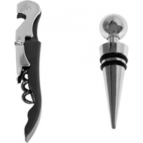 Metal. Accesorios para vinos. Sacacorcho y tapón de metal.