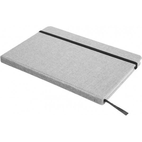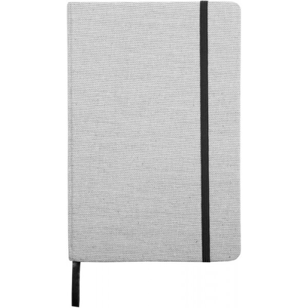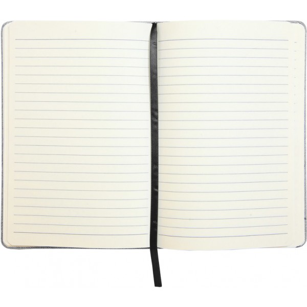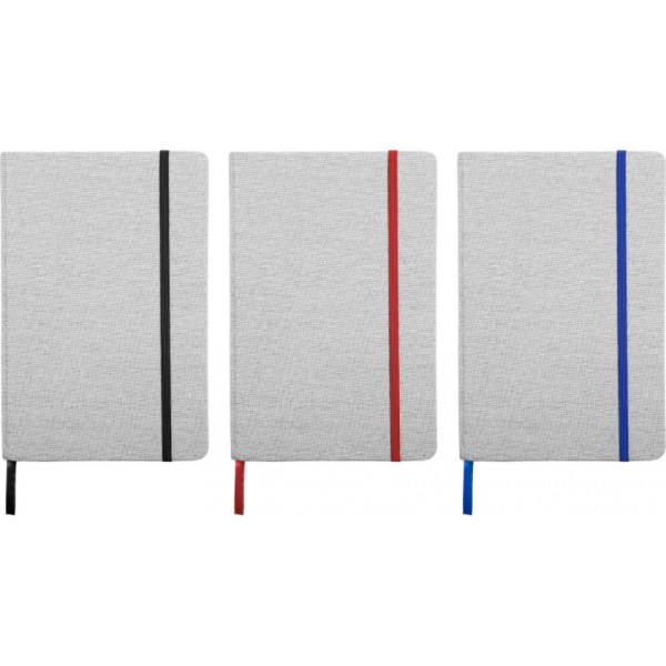 Libreta de tela. 80 hojas rayadas, señalador de tela y elástico de color que cierra o sostiene la hoja.