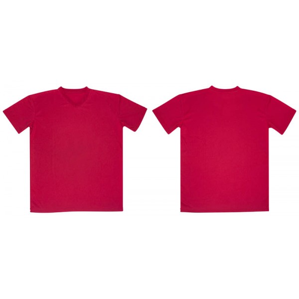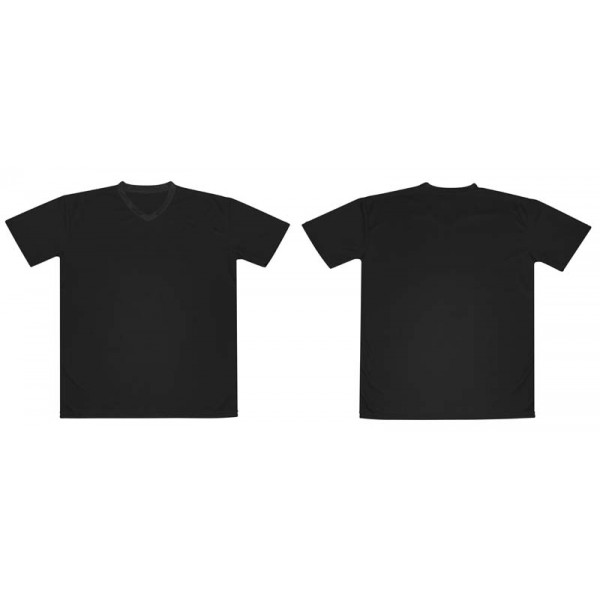 Polera 100% POLIÉSTER de 150gr/m2, para HOMBRE. Cuello en "V", manga corta. Presentación individual en bolsa de polipropileno transparente