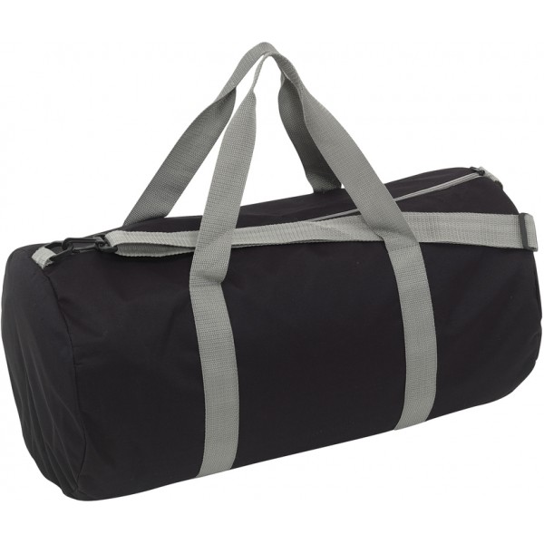 Ø28 x 55 cm. Polyester 600D. Bolso deportivo con espacioso compartimento principal con cierre, 2 asas, correa ajustable.