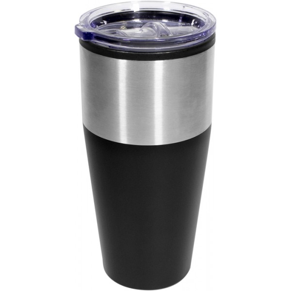Ø 8,5 x 18 cm. Capacidad 600 ml. Plástico y acero inoxidable. Interior: polipropileno (PP) y exterior acero inoxidable 201 con detalles de color. Tapa transparente que cierra y se abre deslizandose.