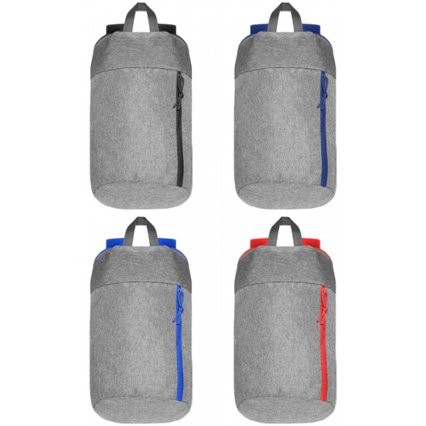 39,5 x 23 x 10 cm. Polyester. Capacidad: 9 lts. Mochila con un compartimento principal, en el frente un bolsillo frontal con cierre, detalle de color en la tira y hebilla de soga del mismo color. La parte de atrás acolchonada de color.