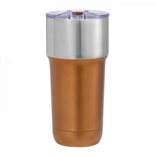 Mug doble pared, sellado al vacío. Interior en acero 304 y exterior en acero 201. Tapa de poliestireno con anillo de silicona y detalles en color en juego con el cuerpo. Pintura powder coat (pintura más duradera y resistente a la corrosión y el paso del tiempo), parte superior en acero inoxidable. Mantiene hasta 12 hs la temperatura de las bebidas calientes y 24 hs de las bebidas frías.
