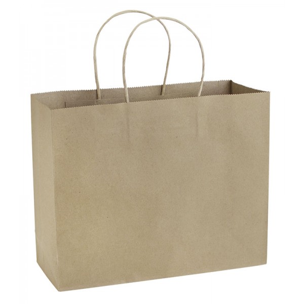 Bolsa de Papel kraft 100% reciclable y reutilizable. Fabricada en resistente material natural de 120g/m2. Contiene asas de papel prensado al tono.